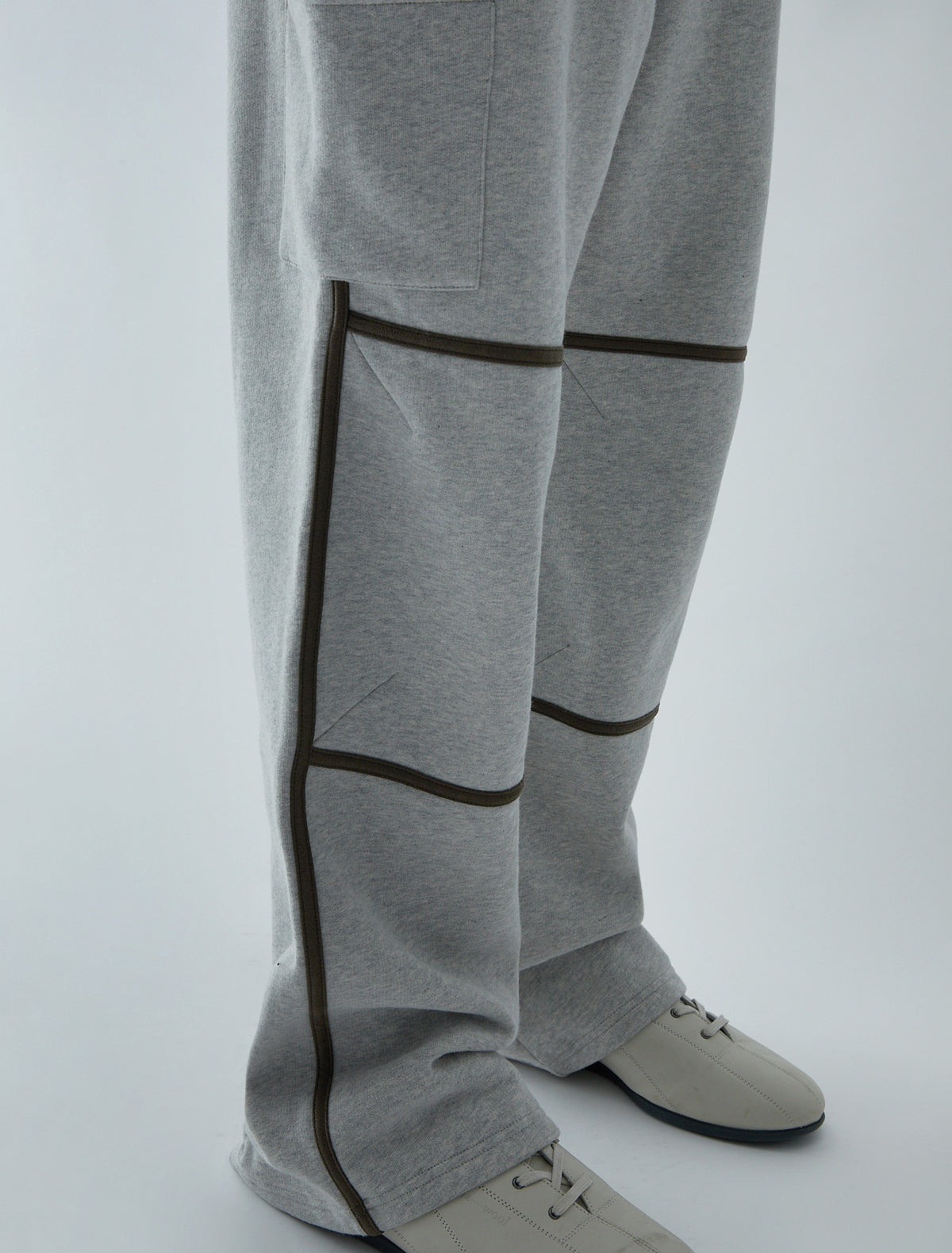 Do not press the iron on top of the brown pipping.